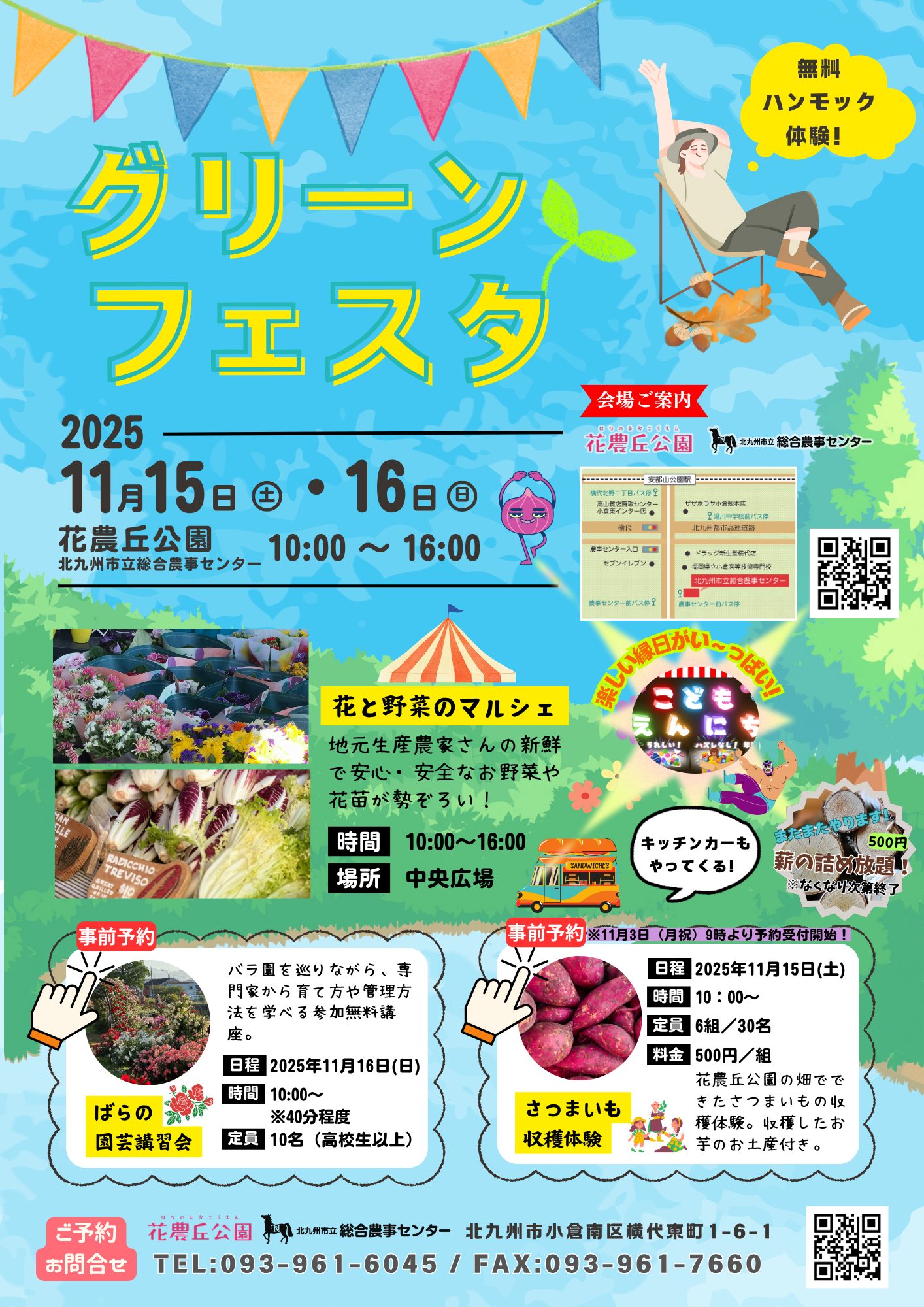11月1日より、お申込受付スタートです。 ## 講座概要 【場所】花農丘公園北九州市立総合農事センター