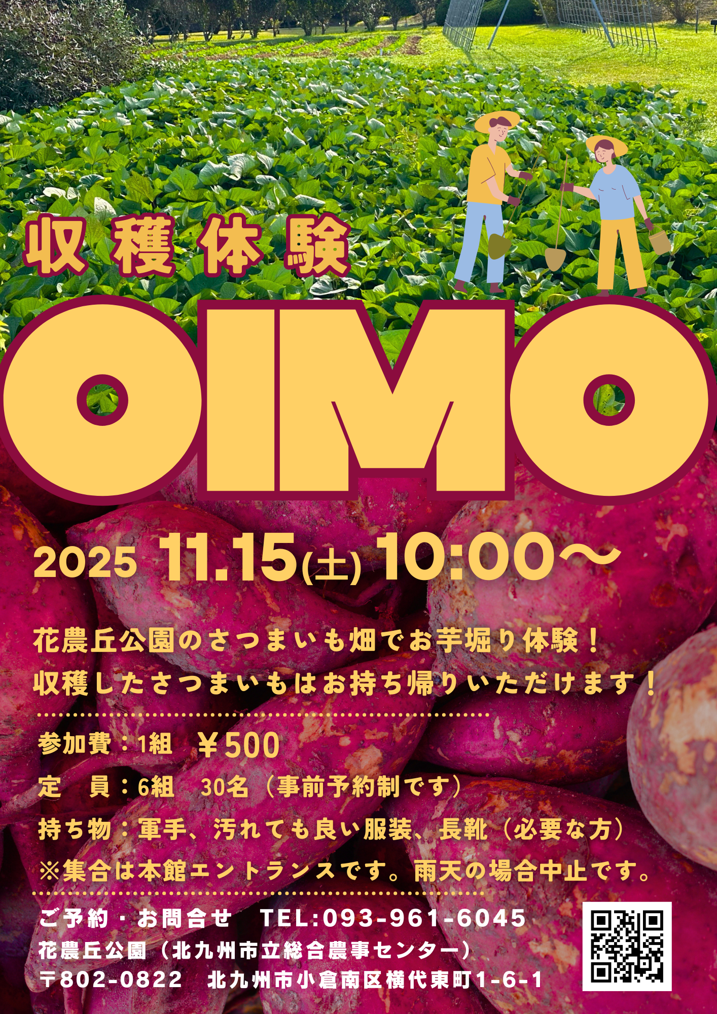 満席となりました(11/3) 【さつまいも収穫体験のお知らせ】 ほっくほくの秋の味覚🍂 花農丘公園でさつまいもを収穫しよう🍠