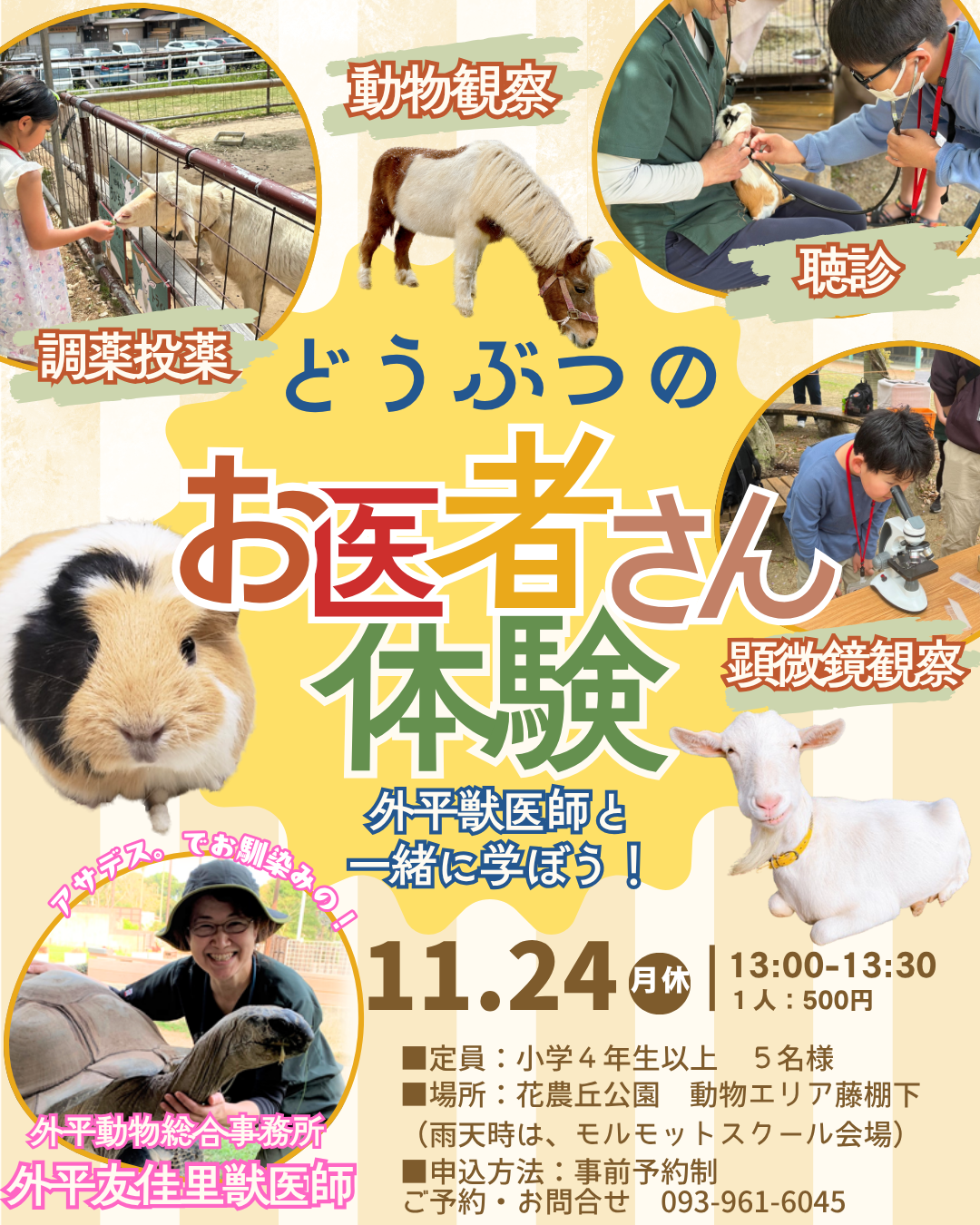 **獣医さんのお仕事体験イベント開催!** アサデス。でお馴染みのゆかり先生と一緒に、獣医さんのお仕事を体験してみませんか? 動物について気になることがあれば、ぜひゆかり先生に質問してくださいね! — **イベント詳細** — **ご予約方法** 皆様のご参加を心よりお待ちしております!